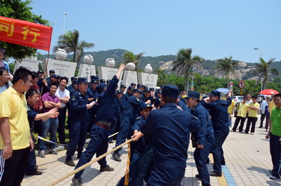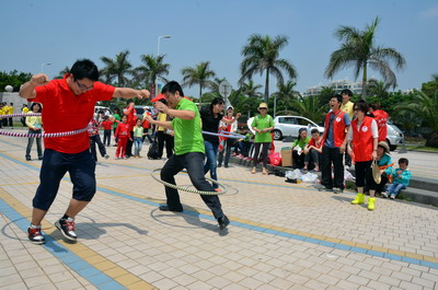 陽(yáng)光明媚、海浪輕拍,大雨洗滌過(guò)的海濱分外清新。員工和官兵代表們絡(luò)繹不絕、配合默契撿拾木棧道沿途垃圾,志愿者紅色馬甲與海軍藍(lán)色制服錯(cuò)落分布,構(gòu)成海灘一道獨(dú)特亮麗的風(fēng)景線(xiàn)。員工子女們也顧不得滿(mǎn)頭大汗,興沖沖地?fù)炱鸨缓K疀_上岸的雜物,用心體會(huì)著環(huán)保的理念和勞動(dòng)的快樂(lè)。音樂(lè)廣場(chǎng)上的拔河比賽和趣味游戲?qū)F(xiàn)場(chǎng)氣氛推向高潮。來(lái)自集團(tuán)和海軍南方局的16支代表隊(duì)奮力拼搏,拉拉隊(duì)員激情吶喊,充分展現(xiàn)了廣大員工和現(xiàn)代軍人團(tuán)結(jié)拼搏的精神風(fēng)貌。經(jīng)過(guò)激烈角逐,象嶼碼頭、海軍南方局代表隊(duì)拔得頭籌,分獲甲、乙組冠軍。由貿(mào)易、建設(shè)、速傳、資產(chǎn)四家工會(huì)精心準(zhǔn)備的趣味游戲吸引了眾多員工及家屬參與,“龍鳳戲珠”、“呼啦行進(jìn)”、“勇闖長(zhǎng)繩”、“向快樂(lè)出發(fā)”等環(huán)節(jié)異彩紛呈,歡呼聲、叫好聲,高潮迭起。