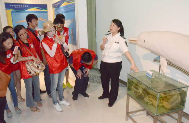 活動中,志愿者們都很激動,紛紛拿出手機和心愛的海豚拍照合影,大家通過喂食和撫觸,與海豚親密互動,真真切切地體會到人與海洋生活和諧共處的那種愉悅和幸福。隨后在科普館內,海洋漁業(yè)局的講解員為志愿者們詳細介紹了關于中華白海豚和海洋保護的相關知識,志愿者們認真傾聽,踴躍提問,與講解員展開了熱烈的互動,收獲良多。