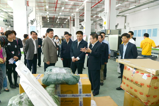 調(diào)研現(xiàn)場,王蒙徽書記等市領(lǐng)導(dǎo)聽取了王龍雛董事長、陳方副總裁對(duì)廈門跨境電商產(chǎn)業(yè)園情況的介紹,察看了作業(yè)現(xiàn)場。王書記在調(diào)研過程中對(duì)象嶼集團(tuán)在自貿(mào)試驗(yàn)區(qū)推動(dòng)過程中邊摸索、邊推動(dòng),敢于先行先試,開拓海運(yùn)快件物流新通路,構(gòu)建廈門跨境電商產(chǎn)業(yè)園的新思維、新模式給予了肯定,對(duì)海關(guān)、國檢給予的鼎力合作支持表示感謝。