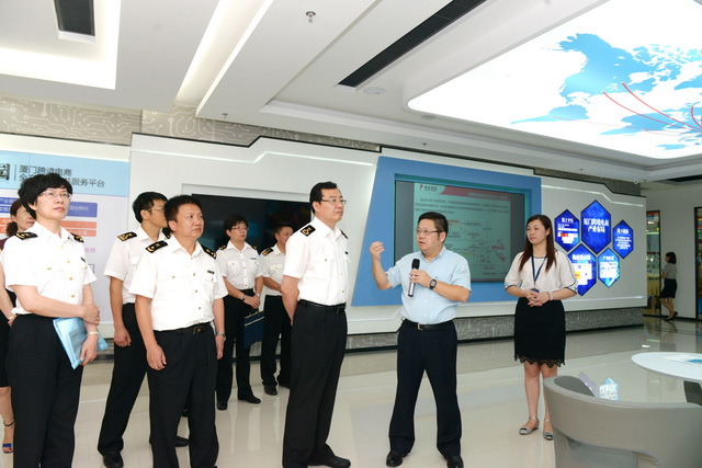 6月15日下午,廈門海關(guān)關(guān)長柏華冰一行蒞臨廈門跨境電商產(chǎn)業(yè)園考察調(diào)研,象嶼集團陳方副總裁陪同并作介紹。
