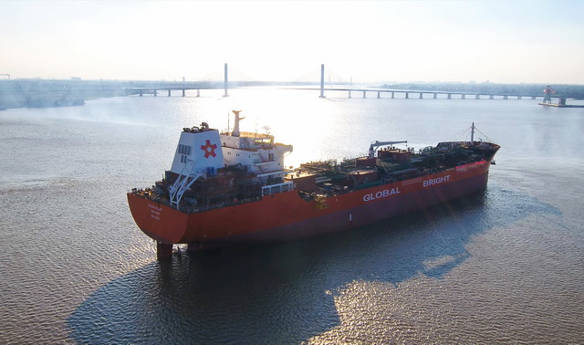 38,800 DWT 雙相不銹鋼化學(xué)品船順利出塢