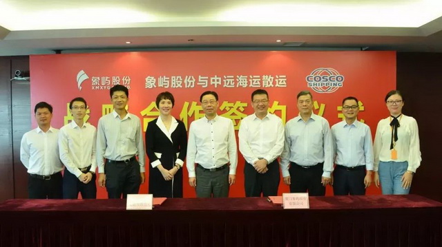 8月3日,廈門象嶼股份有限公司與中遠海運散貨運輸有限公司舉行戰(zhàn)略合作協(xié)議簽署儀式。象嶼股份黨委書記、總經(jīng)理鄧啟東、中遠海運散運黨委副書記、總經(jīng)理楊志堅分別代表雙方公司在戰(zhàn)略合作協(xié)議上簽字,象嶼股份副總經(jīng)理、象嶼速傳總經(jīng)理肖靜勤、中遠海運散運營銷中心總監(jiān)謝光盛等領導出席了簽約儀式。