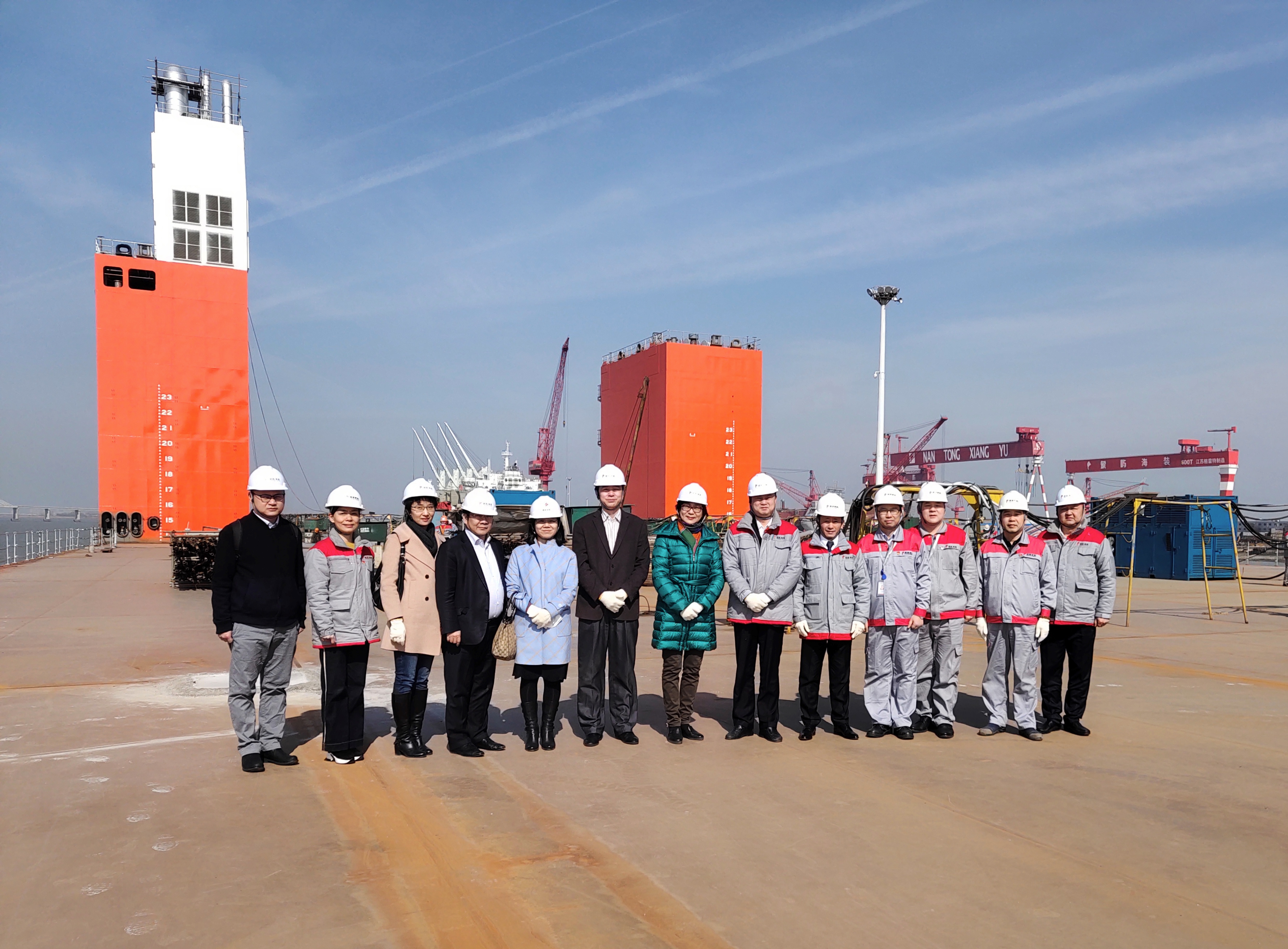 3月8日,廈門市委常委、自貿委主任倪超、廈門海事局黨組書記、局長陳傳全、廈門自貿委副主任陳敏、廈門自貿委象嶼辦副處長秦璐在象嶼集團黨委副書記邵蕰默、副總裁廖世澤的陪同下,蒞臨南通象嶼海洋裝備有限責任公司(簡稱“象嶼海裝”)考察調研。象嶼海裝總經理朱建華、常務副總經理秦偉民、象嶼海裝黨支部書記、行政副總經理孫剛、生產副總經理江創(chuàng)宏等熱情接待。