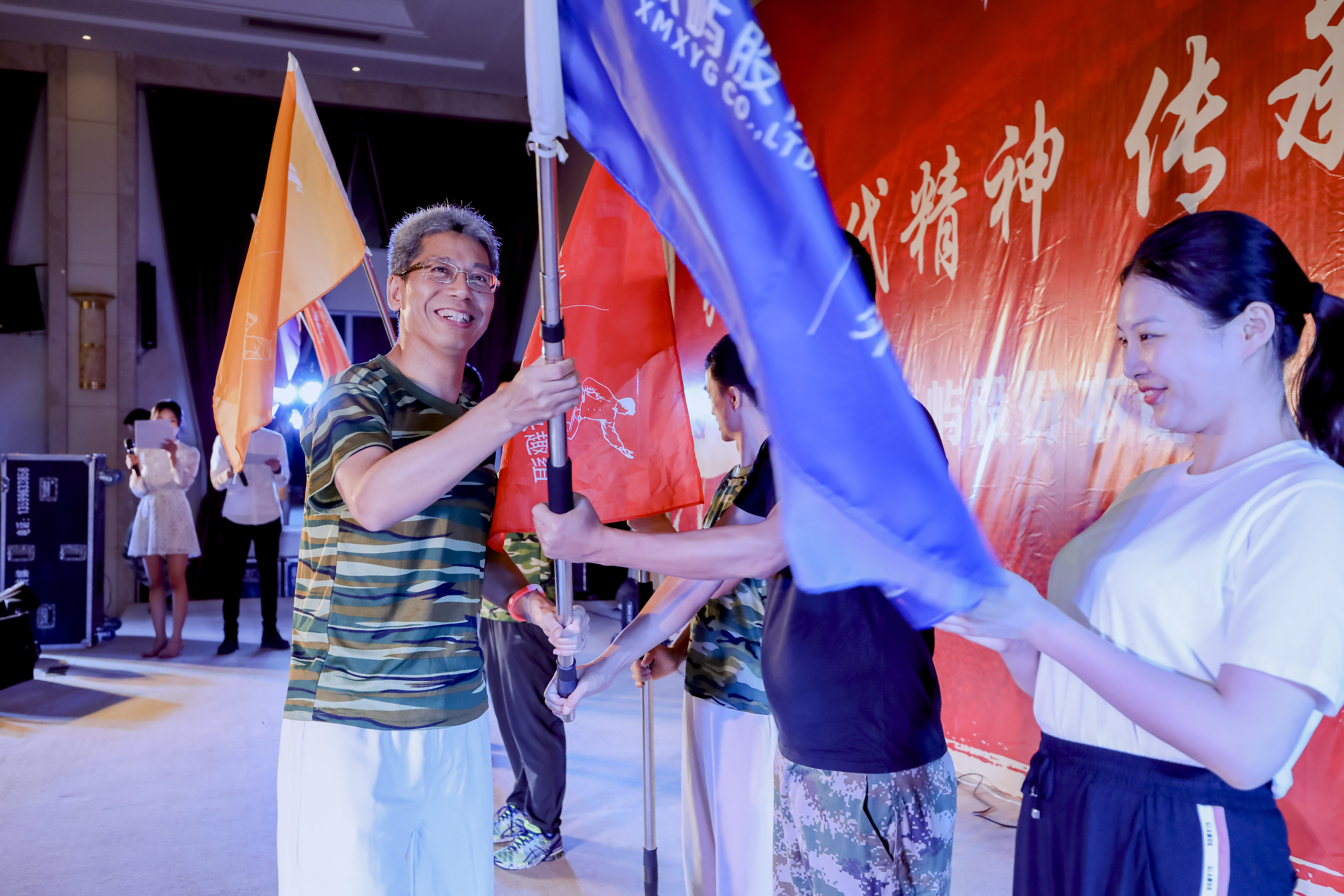 徒步活動(dòng)結(jié)束當(dāng)晚,大家一起載歌載舞。聲情并茂的《人民萬歲》詩朗誦將大家又帶回那個(gè)戰(zhàn)火紛爭(zhēng)的年代,回首了共產(chǎn)黨人解放全中國的艱苦歷程;紅歌競(jìng)唱賽環(huán)節(jié),各個(gè)小組爭(zhēng)先搶答,現(xiàn)場(chǎng)氣氛好不熱鬧;投資企業(yè)大接力則充分考驗(yàn)大家對(duì)公司情況的熟悉程度,參賽者個(gè)個(gè)都實(shí)力不俗,對(duì)各地公司名稱如數(shù)家珍。當(dāng)晚,股份黨委副書記、副總經(jīng)理齊衛(wèi)東還為股份首批五個(gè)興趣小組授旗,號(hào)召更多員工積極加強(qiáng)體育鍛煉,增強(qiáng)身體素質(zhì)。